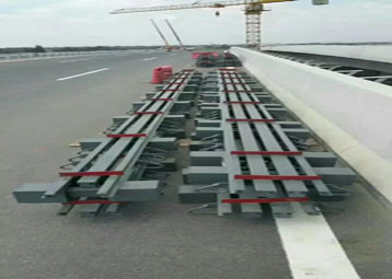 橋梁伸縮縫:指的是為滿足橋面變形的要求,通常在兩梁端之間、梁端與橋臺之間或橋梁的鉸接位置上設置伸縮縫。要求伸縮縫在平行、垂直于橋梁軸線的兩個方向,均能自由伸縮,牢固可靠,車輛行駛過時應平順、無突跳與噪聲;要能防止雨水和垃圾泥土滲入阻塞;安裝、檢查、養(yǎng)護、消除污物都要簡易方便。 在設置伸縮縫處,欄桿與橋面鋪裝都要斷開。